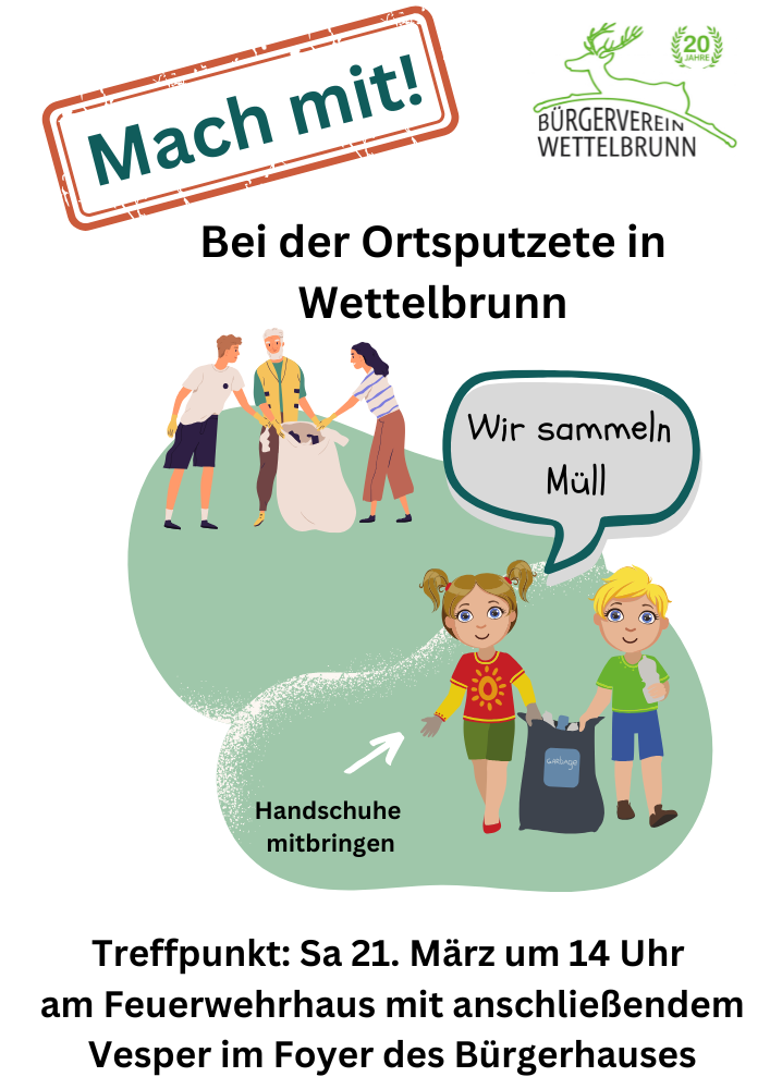 Ortsputzete , Sa. 21.03.2026, 14:00 Uhr, am Feuerwehrhaus Wettelbrunn